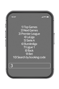 Select your preffered league/ Top Games / Next games or serch by booking code