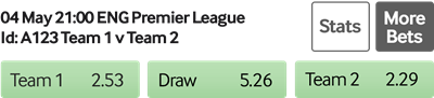 4The default bet type is Match Result. If you’d like to see more, tap More Bets