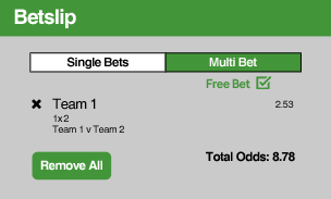 b) If placing a Multi Bet, select Use My Free Bet at the bottom of your betslip